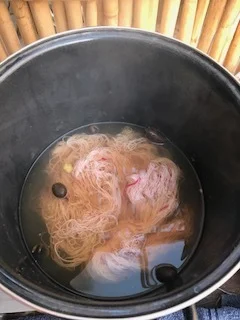 You should now have a soy milk infused by dry textile and a clean dye pot.