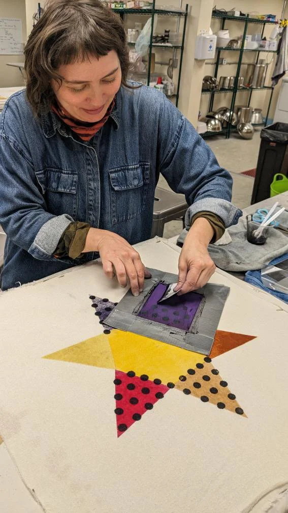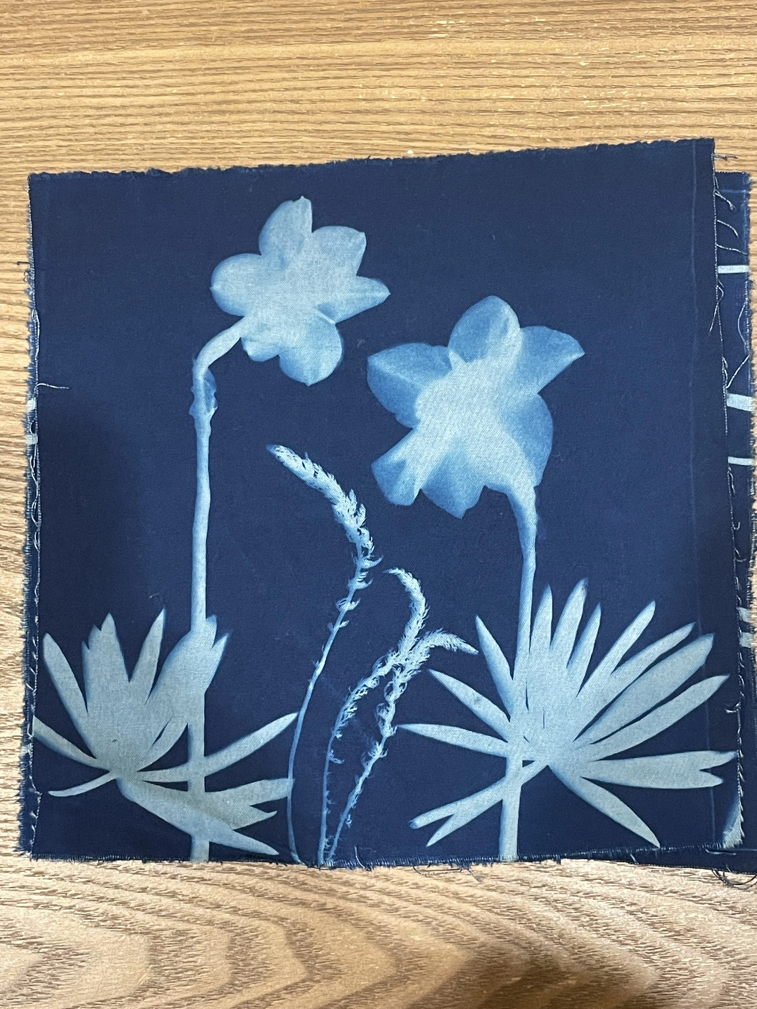 Had the most amazing week at Sanborn Mills Farm assisting Sara Goodman with her Mordant Dyes workshop. We made cold and hot mordant baths, printed with mordants and natural dyes and made so many colorful dye baths. The weather was perfect and all the sprint daffodils were showing off. I was able to give a mini Cyanotype demo and we made prints of daffodils with the warm sun. There are so many wonderful classes at this historical farm including working with draft animals, blacksmithing, carpentry and of course everything textiles. The rooms smell like a pine forest and the meals are literally farm to table.