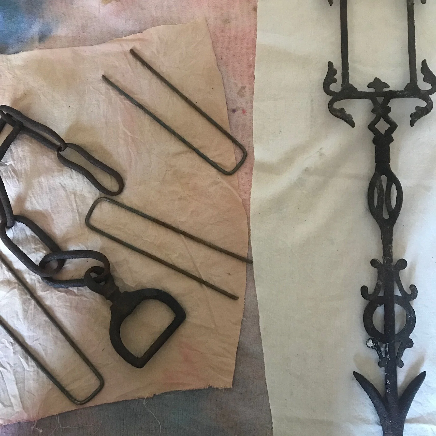 Be careful when collecting rusty objects as no one wants tetanus while collecting for a dye project. Objects big and small work, it all depends on your vision for your final outcome.