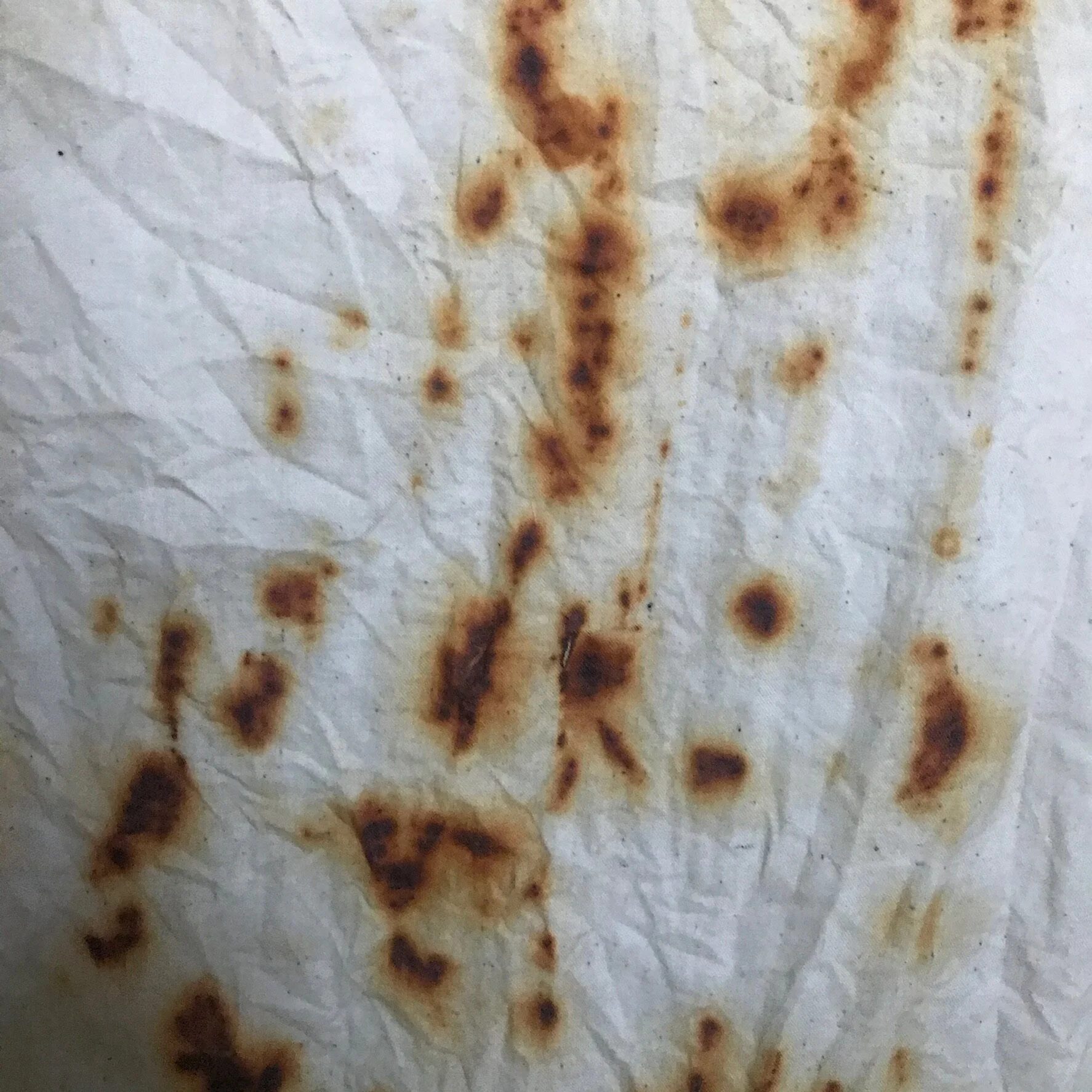 Place a drop cloth on your work surface. Rust is corrosive, you want to make sure you are not going to ruin a nice table or counter. Working on the ground is good too! Lay out your fabrics on your drop cloth. You can use dyed and undyed fabrics, both will yield varying results.